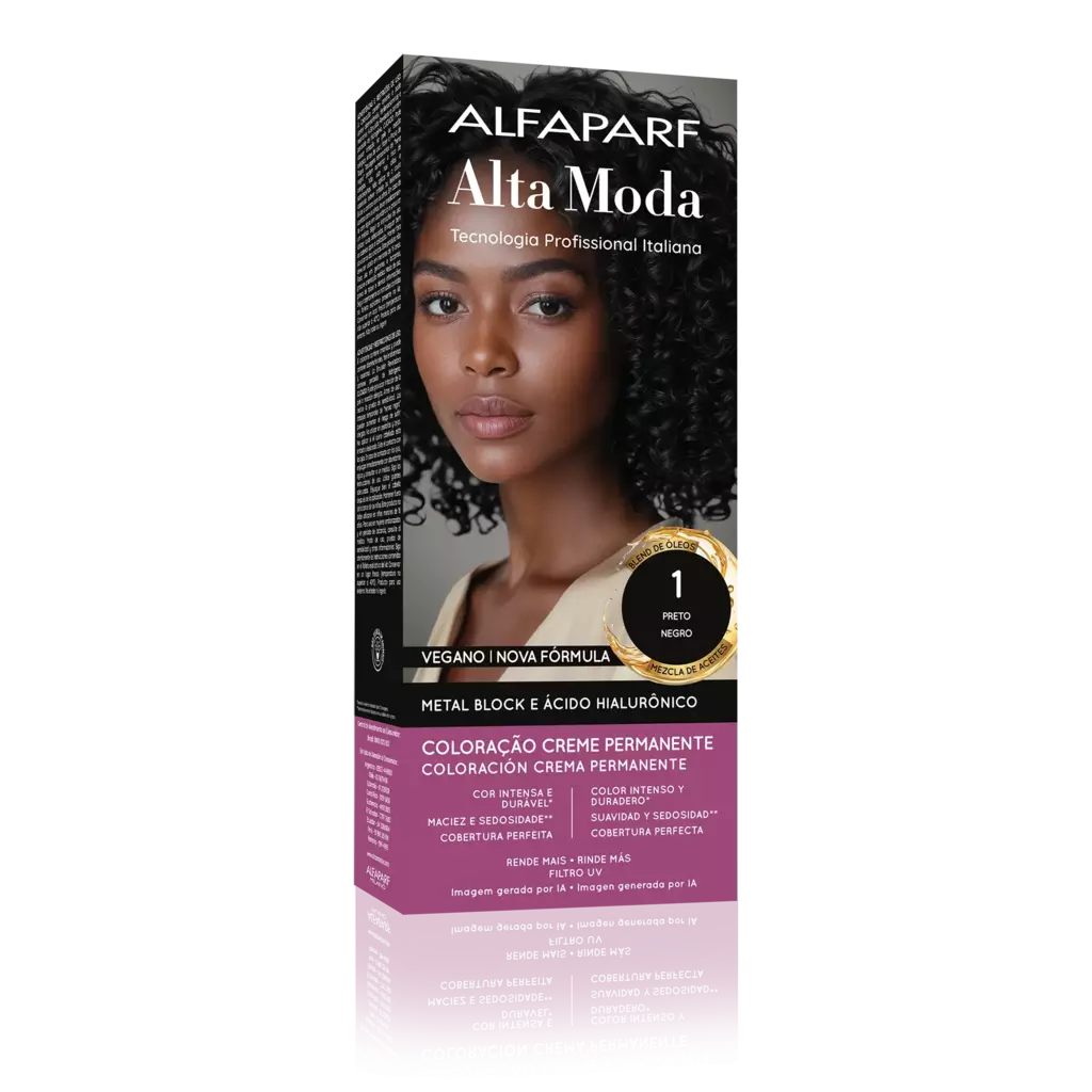 COMPOSIÇÃO / COMPOSICIÓN: Coloração Creme Permanente / Coloración Crema Permanente Alfaparf Alta Moda - Proc. ANVISA n˚.: 25351.451050/2024-88 - AQUA (WATER), CETEARYL ALCOHOL, CETEARETH-50, PROPYLENE GLYCOL, P-PHENYLENEDIAMINE, PEG-40 HYDROGENATED CASTOR OIL, LAURYL ALCOHOL, AMMONIA, 2-METHYLRESORCINOL, 2,4 DIAMINOPHENOXYETHANOL HCL, M-AMINOPHENOL, MYRISTYL ALCOHOL, ETHANOLAMINE, COCAMIDOPROPYL BETAINE, SODIUM SULFITE, PARFUM (FRAGRANCE), ERYTHORBIC ACID, POLYQUATERNIUM-22, EDTA, BISABOLOL, AMYL SALICYLATE, ETHYLHEXYL METHOXYCINNAMATE, HELIANTHUS ANNUUS (SUNFLOWER) SEED OIL, GLYCERIN, COCOS NUCIFERA (COCONUT) OIL, LINUM USITATISSIMUM (LINSEED) SEED OIL, SODIUM PCA, SODIUM LACTATE, SOY AMINO ACIDS, ARGININE, WHEAT AMINO ACIDS, ASPARTIC ACID, PCA, SERINE, THREONINE, ARGANIA SPINOSA KERNEL OIL, MACADAMIA TERNIFOLIA SEED OIL, OLEA EUROPAEA (OLIVE) FRUIT OIL, PERSEA GRATISSIMA (AVOCADO) OIL, ARGININE HCL, PENTYLENE GLYCOL, SODIUM HYALURONATE CROSSPOLYMER, HYDROLYZED RICE PROTEIN, PHYTIC ACID, ORYZA SATIVA (RICE) EXTRACT, GLYCINE, ALANINE, VALINE, SODIUM BENZOATE, ISOLEUCINE, PROLINE, TOCOPHEROL, HISTIDINE, PHENYLALANINE, POTASSIUM SORBATE. Para a lista completa e atualizada de ingredientes, consulte a embalagem do produto.
