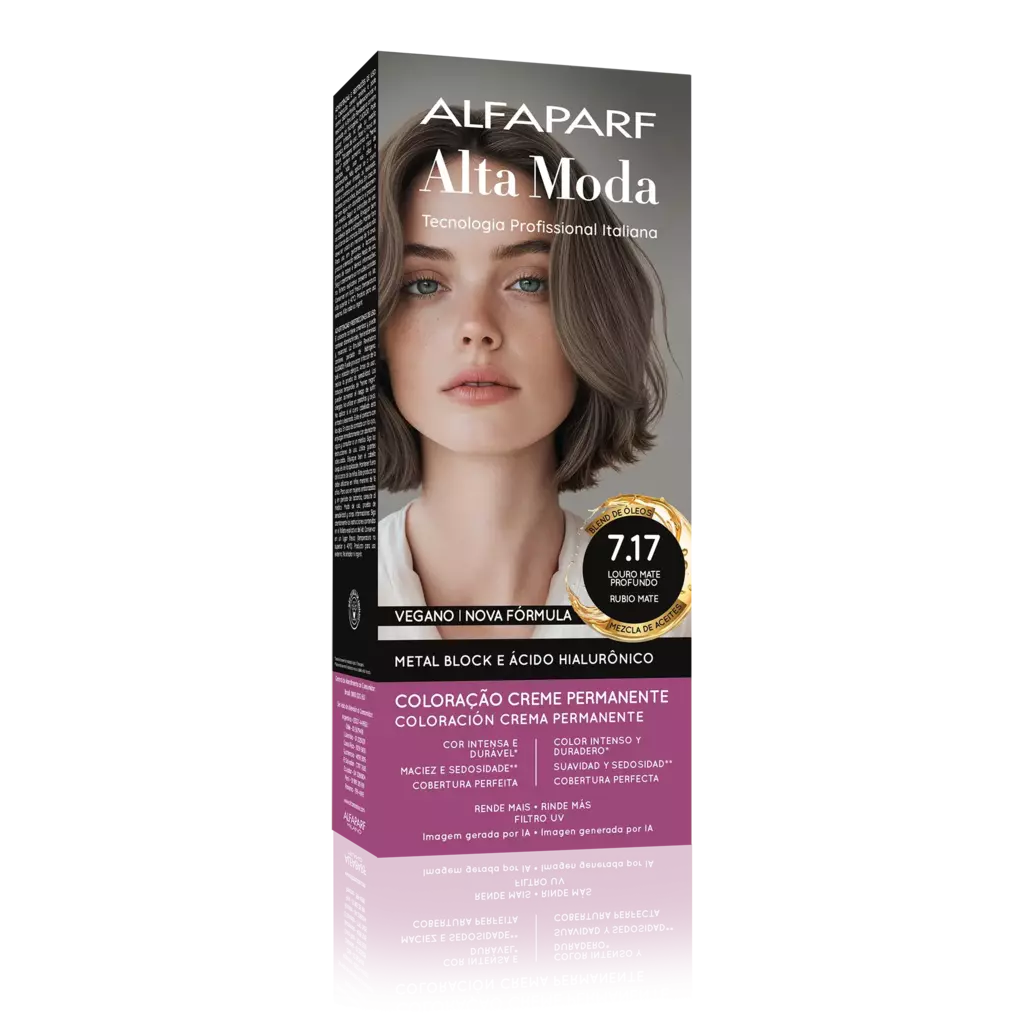 COMPOSIÇÃO / COMPOSICIÓN: Coloração Creme Permanente / Coloración Crema Permanente Alfaparf Alta Moda - Proc. ANVISA n˚.: 25351.451050/2024-88 - AQUA (WATER), CETEARYL ALCOHOL, PROPYLENE GLYCOL, CETEARETH-50, PEG-40 HYDROGENATED CASTOR OIL, AMMONIA, LAURYL ALCOHOL, MYRISTYL ALCOHOL, TOLUENE-2,5-DIAMINE SULFATE, COCAMIDOPROPYL BETAINE, SODIUM SULFITE, ETHANOLAMINE, PARFUM (FRAGRANCE), ERYTHORBIC ACID, POLYQUATERNIUM-22, 2-METHYLRESORCINOL, HYDROXYETHYL-3,4-METHYLENEDIOXYANILINE HCL, EDTA, BISABOLOL, AMYL SALICYLATE, 2,4-DIAMINOPHENOXYETHANOL HCL, P-AMINOPHENOL, M-AMINOPHENOL, ETHYLHEXYL METHOXYCINNAMATE, HELIANTHUS ANNUUS (SUNFLOWER) SEED OIL, GLYCERIN, COCOS NUCIFERA (COCONUT) OIL, LINUM USITATISSIMUM (LINSEED) SEED OIL, SODIUM PCA, SODIUM LACTATE, SOY AMINO ACIDS, ARGININE, WHEAT AMINO ACIDS, ASPARTIC ACID, PCA, SERINE, THREONINE, ARGANIA SPINOSA KERNEL OIL, MACADAMIA TERNIFOLIA SEED OIL, OLEA EUROPAEA (OLIVE) FRUIT OIL, PERSEA GRATISSIMA (AVOCADO) OIL, ARGININE HCL, PENTYLENE GLYCOL, SODIUM HYALURONATE CROSSPOLYMER, HYDROLYZED RICE PROTEIN, PHYTIC ACID, ORYZA SATIVA (RICE) EXTRACT, GLYCINE, ALANINE, VALINE, SODIUM BENZOATE, ISOLEUCINE, PROLINE, TOCOPHEROL, HISTIDINE, PHENYLALANINE, POTASSIUM SORBATE. Para a lista completa e atualizada de ingredientes, consulte a embalagem do produto.