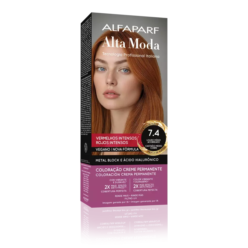 COMPOSIÇÃO / COMPOSICIÓN: Coloração Creme Permanente / Coloración Crema Permanente Alfaparf Alta Moda - Proc. ANVISA n˚.: 25351.451050/2024-88 - AQUA (WATER), CETEARYL ALCOHOL, PROPYLENE GLYCOL, CETEARETH-50, PEG-40 HYDROGENATED CASTOR OIL, AMMONIA, LAURYL ALCOHOL, P-AMINOPHENOL, MYRISTYL ALCOHOL, 2-METHYL-5-HYDROXYETHYLAMINOPHENOL, COCAMIDOPROPYL BETAINE, SODIUM SULFITE, PARFUM (FRAGRANCE), 2-METHYLRESORCINOL, ERYTHORBIC ACID, POLYQUATERNIUM-22, ETHANOLAMINE, EDTA, RESORCINOL, P-PHENYLENEDIAMINE, BISABOLOL, M-AMINOPHENOL, 2-AMINO-6-CHLORO-4-NITROPHENOL, AMYL SALICYLATE, ETHYLHEXYL METHOXYCINNAMATE, HELIANTHUS ANNUUS (SUNFLOWER) SEED OIL, GLYCERIN, COCOS NUCIFERA (COCONUT) OIL, LINUM USITATISSIMUM (LINSEED) SEED OIL, SODIUM PCA, SODIUM LACTATE, SOY AMINO ACIDS, ARGININE, WHEAT AMINO ACIDS, ASPARTIC ACID, PCA, SERINE, THREONINE, ARGANIA SPINOSA KERNEL OIL, MACADAMIA TERNIFOLIA SEED OIL, OLEA EUROPAEA (OLIVE) FRUIT OIL, PERSEA GRATISSIMA (AVOCADO) OIL, ARGININE HCL, PENTYLENE GLYCOL, SODIUM HYALURONATE CROSSPOLYMER, HYDROLYZED RICE PROTEIN, PHYTIC ACID, ORYZA SATIVA (RICE) EXTRACT, GLYCINE, ALANINE, VALINE, SODIUM BENZOATE, ISOLEUCINE, PROLINE, TOCOPHEROL, HISTIDINE, PHENYLALANINE, POTASSIUM SORBATE. Para a lista completa e atualizada de ingredientes, consulte a embalagem do produto.