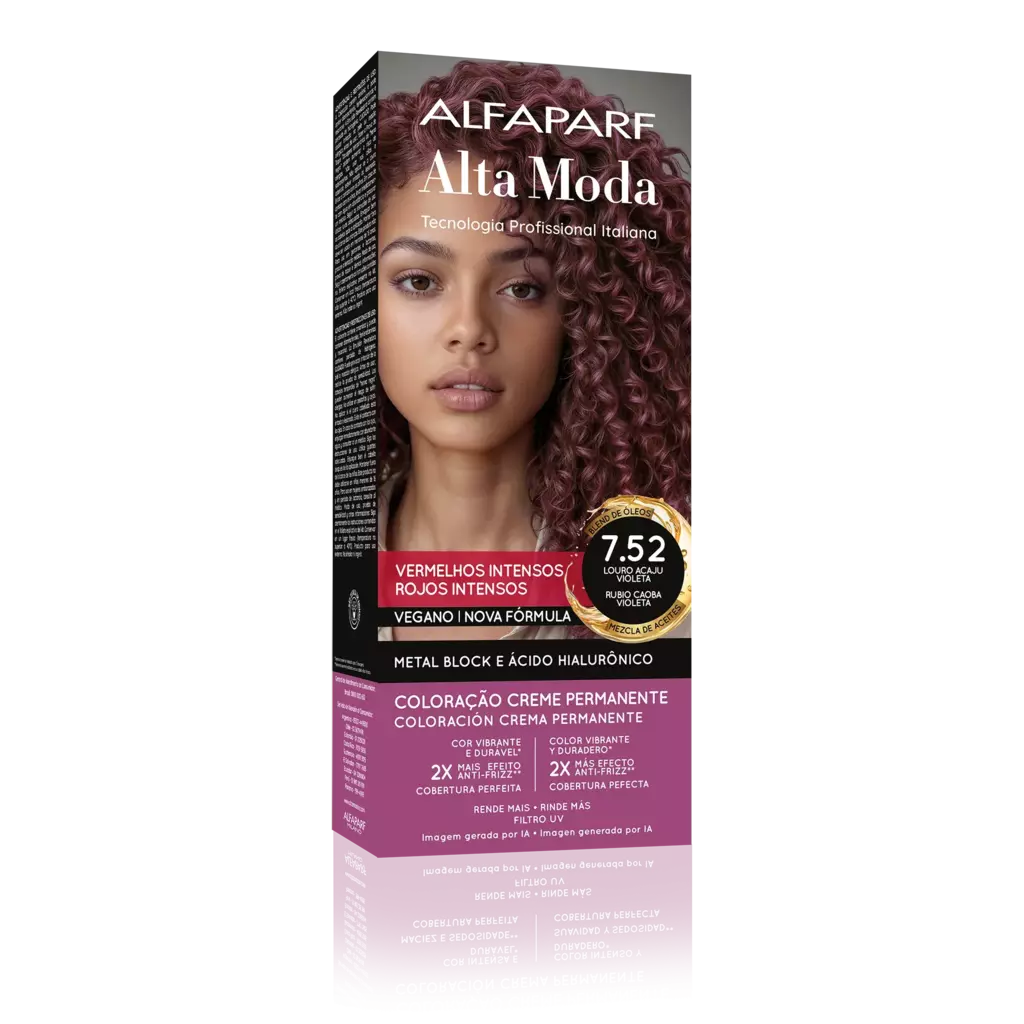 COMPOSIÇÃO / COMPOSICIÓN: Coloração Creme Permanente / Coloración Crema Permanente Alfaparf Alta Moda - Proc. ANVISA n˚.: 25351.451050/2024-88 - AQUA (WATER), CETEARYL ALCOHOL, PROPYLENE GLYCOL, CETEARETH-50, PEG-40 HYDROGENATED CASTOR OIL, AMMONIA, LAURYL ALCOHOL, MYRISTYL ALCOHOL, COCAMIDOPROPYL BETAINE, SODIUM SULFITE, TOLUENE-2,5-DIAMINE SULFATE, P-AMINOPHENOL, PARFUM (FRAGRANCE), 2-METHYL-5 HYDROXYETHYLAMINOPHENOL, ETHANOLAMINE, ERYTHORBIC ACID, POLYQUATERNIUM-22, 5-AMINO-6-CHLORO-O-CRESOL, 4-AMINO-2-HYDROXYTOLUENE, EDTA, BISABOLOL, AMYL SALICYLATE, 1-NAPHTHOL, ETHYLHEXYL METHOXYCINNAMATE, HELIANTHUS ANNUUS (SUNFLOWER) SEED OIL, GLYCERIN, COCOS NUCIFERA (COCONUT) OIL, LINUM USITATISSIMUM (LINSEED) SEED OIL, SODIUM PCA, SODIUM LACTATE, SOY AMINO ACIDS, ARGININE, WHEAT AMINO ACIDS, ASPARTIC ACID, PCA, SERINE, THREONINE, ARGANIA SPINOSA KERNEL OIL, MACADAMIA TERNIFOLIA SEED OIL, OLEA EUROPAEA (OLIVE) FRUIT OIL, PERSEA GRATISSIMA (AVOCADO) OIL, ARGININE HCL, PENTYLENE GLYCOL, SODIUM HYALURONATE CROSSPOLYMER, HYDROLYZED RICE PROTEIN, PHYTIC ACID, ORYZA SATIVA (RICE) EXTRACT, GLYCINE, ALANINE, VALINE, SODIUM BENZOATE, ISOLEUCINE, PROLINE, TOCOPHEROL, HISTIDINE, PHENYLALANINE, POTASSIUM SORBATE. Para a lista completa e atualizada de ingredientes, consulte a embalagem do produto.